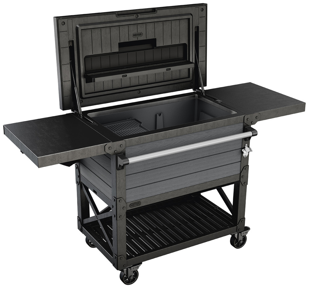Vnútornú časť stola využijete ako úložný priestor. Môžete do neho nasypať ľad a vychladiť fľaše s pitím. Pohyblivou prepážkou oddelíte kocky ľadu od jedla. Alebo ju vyberiete a použijete ju ako tácku. Súčasťou stolíka je aj otvárač na fľaše.
