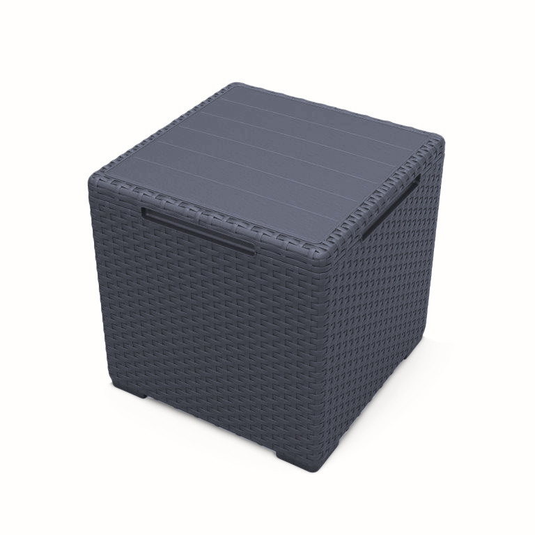 Záhradný stolík a box v jednom Keter Vigo elegantne doplnia vybavenie vašej terasy, balkóna i záhrady. Vďaka krásnemu dizajnu pripomínajúceho ratan ho skvele skombinujete s ostatným nábytkom. Navyše nezaberie príliš veľa miesta. Patrí medzi najmenšie a najlacnejšie odkladacie stolíky a boxy od značky Keter.