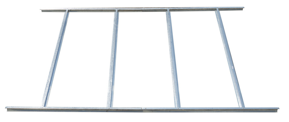 Základňu umiestnite na spevnený rovný povrch pod vaším záhradným domčekom. Potom na ňu pripevnite podlahu z drevených dosiek, OSB dosiek, a pod.