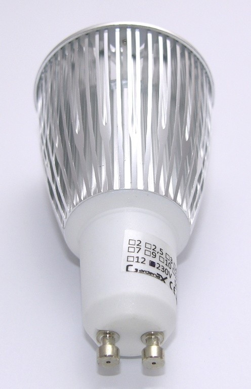LED žárovka, patice GU10, napájení AC 230V, příkon 6W, barva světla 2700-3500K (teplá bílá), světelný tok 400lm,3x LED typu Everlight, úhel svitu 30°, náhrada 40W žárovky, životnost až 50 000 hodin.